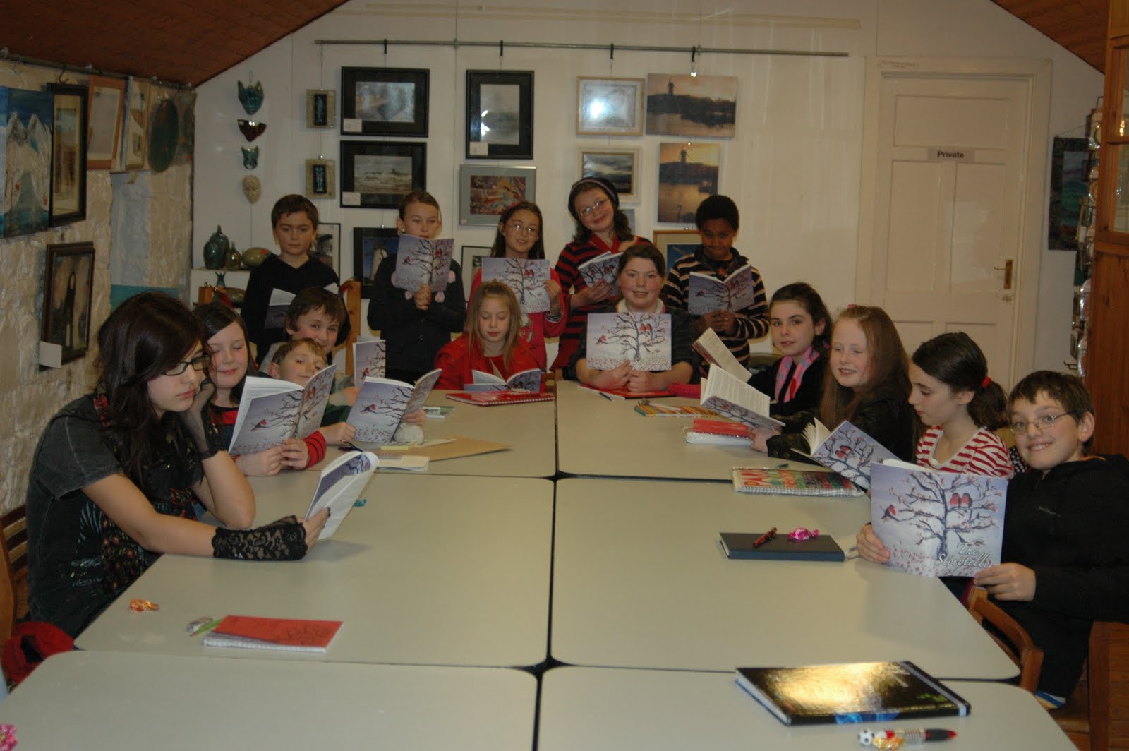 In this picture is Gladys Martin, an adult writers, whose painting ‘The Storytellers’ illustrated the cover of the book and was the inspiration for the title.